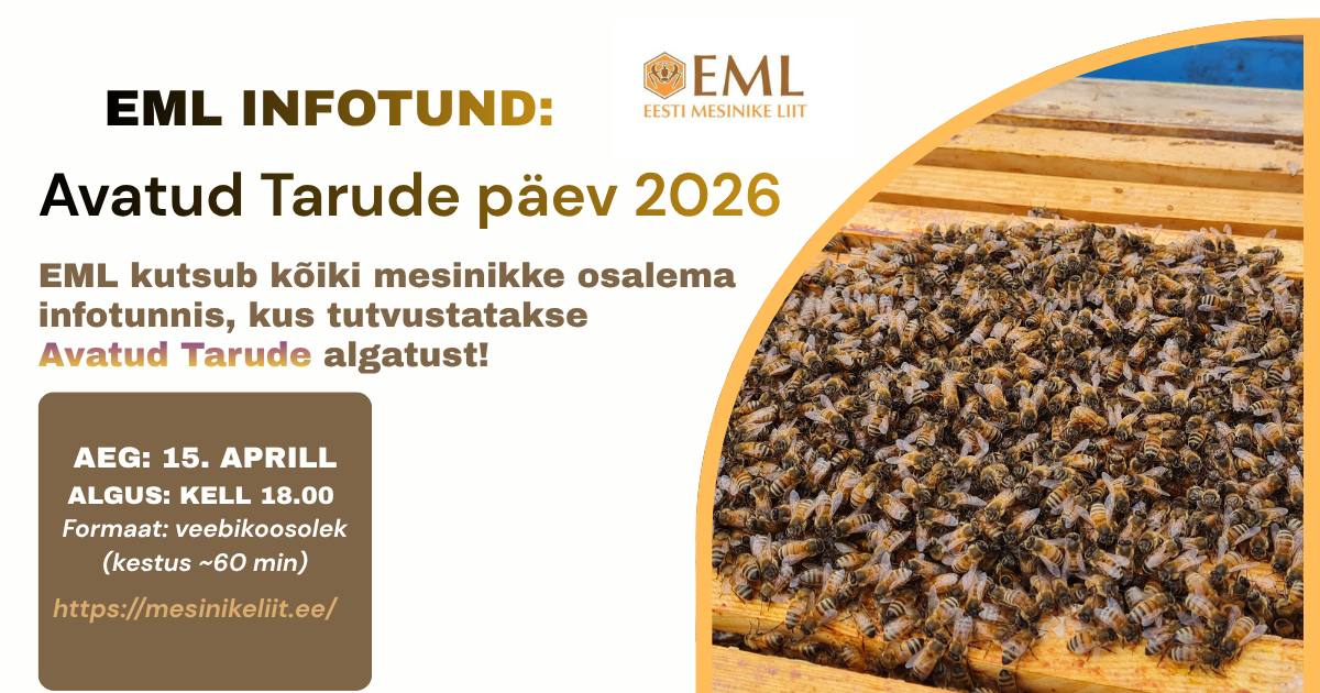 Eesti Mesinike Liit kutsub kõiki mesinikke osalema infotunnis, kus tutvustatakse Avatud Tarude algatust ning jagatakse praktilisi juhiseid üritusel