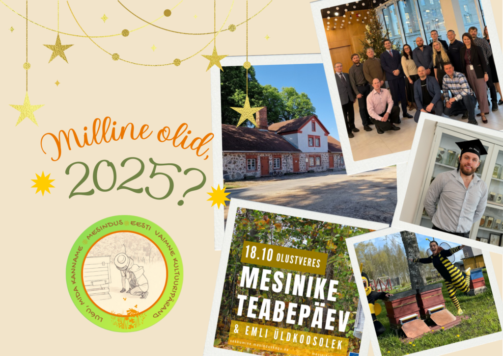 Uus juhatus. Organisatoorselt oli 2025. aasta EML-is suurte muutuste aeg, kuna juhatuse koosseis uuenes suisa kahel korral. Märtsis valisime uue juhatuse, kuna senise juhatuse volituste aeg sai täis; uude juhatusse valiti Helen Michaels, Katri Kaar, Mihkel Kalda ja Valmar Palmsaar, senisest juhatusest jätkas Aleksander Kilk. Värske energia tõi palju elu ja liikumist: EML alustas infohommikute sarjaga veebis ja osales aktiivselt mesindussektorisse sekkumise uue perioodi ideekorjes.